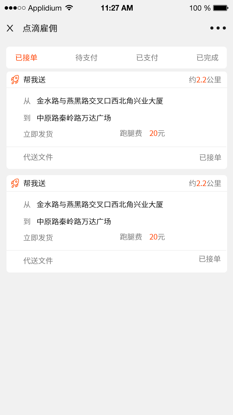 項目概況為讓在校生更好的投入學習,發憤圖強提升自己的技能,早日成為國家棟梁之才,并解決在校生日常諸多瑣碎小事,如買飯、買日需品、領快遞、送資料、還圖書等耗時費力的小事,特開發此公眾號跑腿系統。